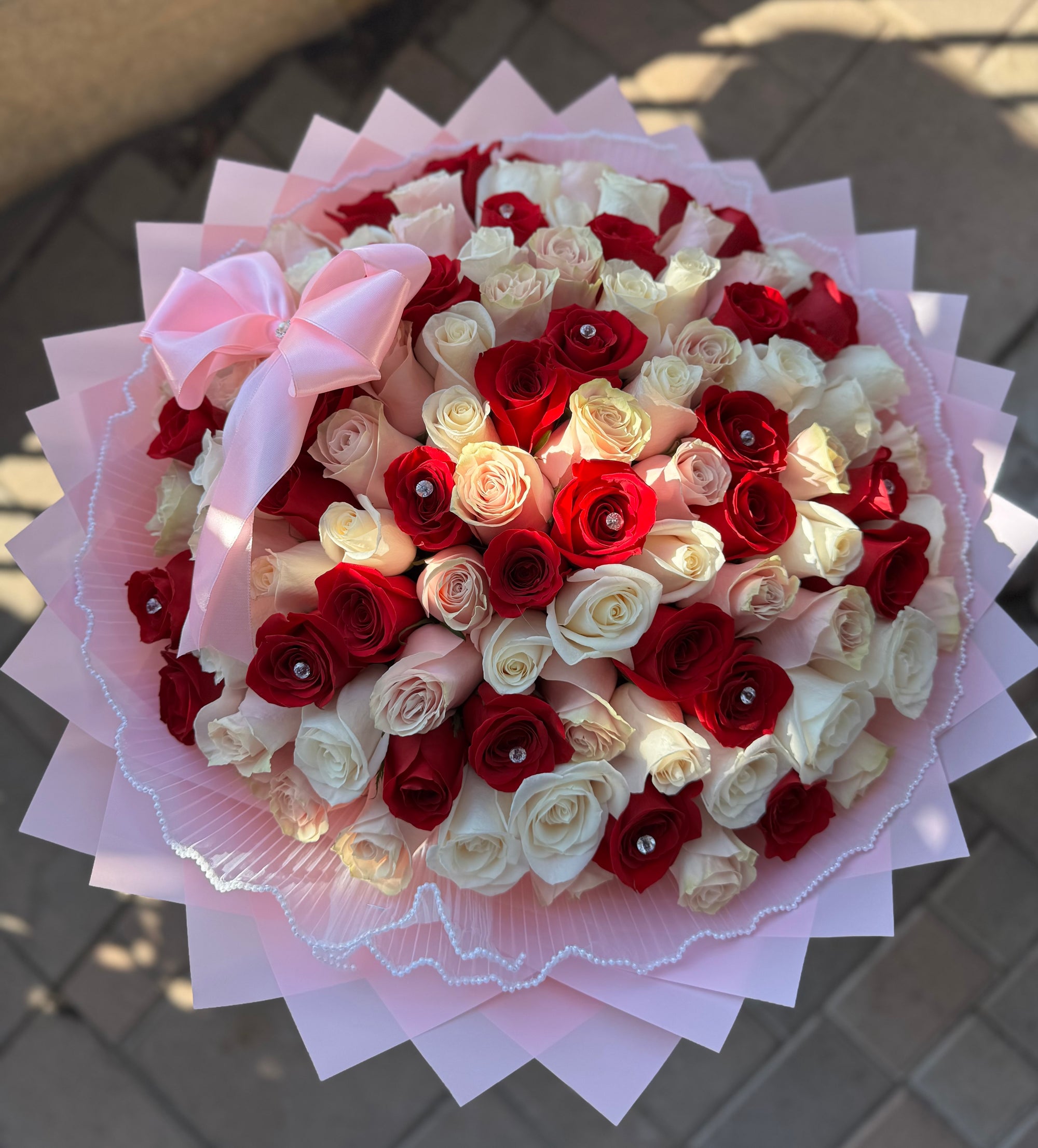 A beautiful combination of 100 roses with add ons.