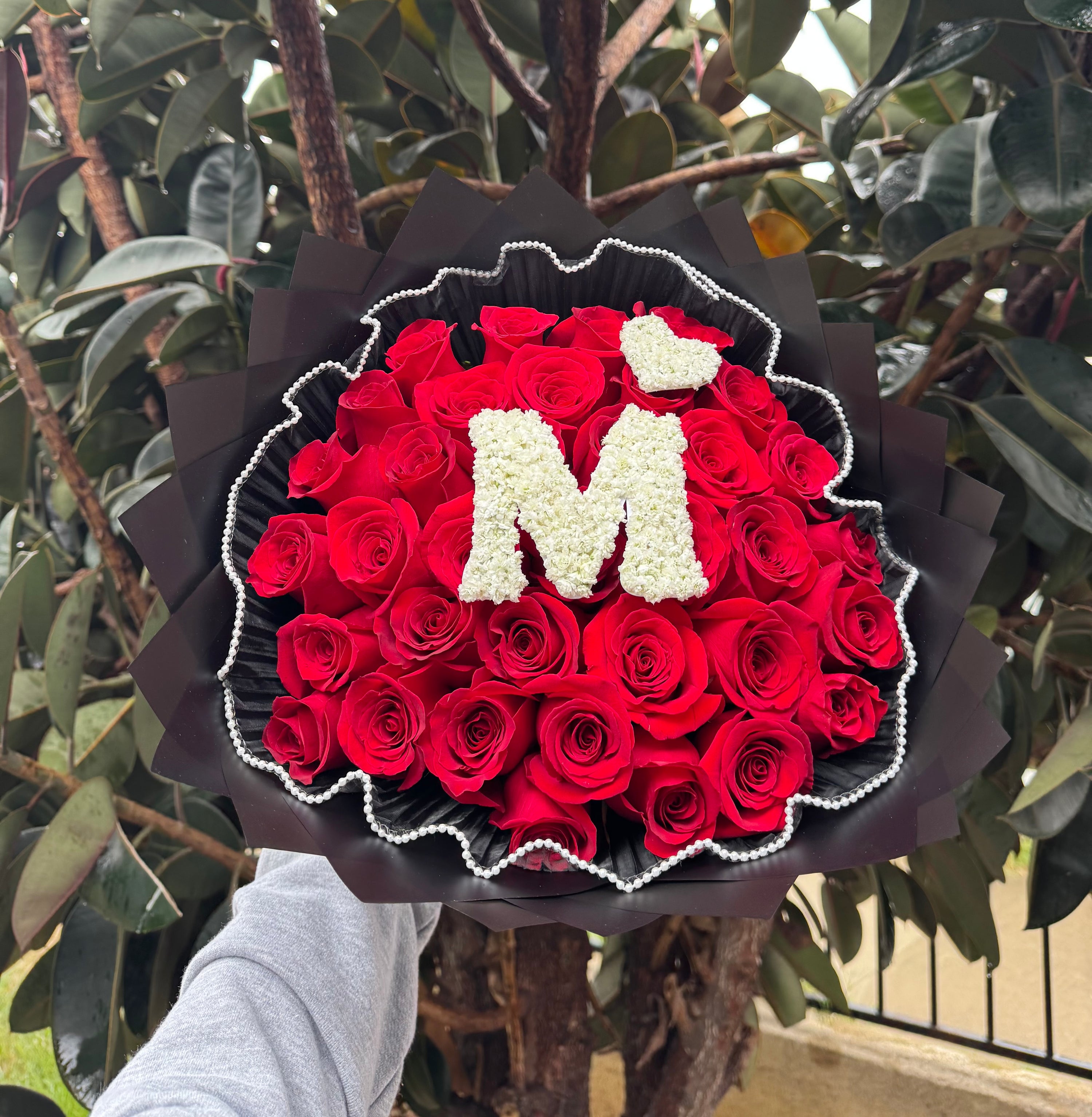 A bouquet of roses wrapped with a babies breath initial or # topper. Make your selections to customize this bouquet to best fit your needs.